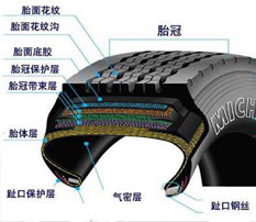 輪胎的類型有:國際標準的輪胎代號,以毫米為單位表示斷面寬度和扁平比的百分數。后面加上:輪胎類型代號,輪輞直徑(英寸),負荷指數(許用承載質量代號),許用車速代號。